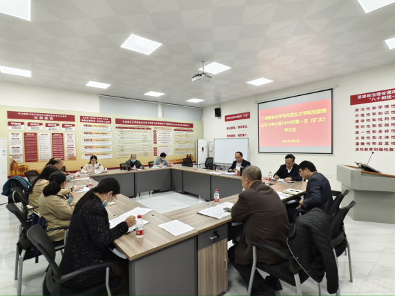 1月9日,英国威廉希尔公司党委理论学习中心组在人文楼103会议室召开理论学习中心组2024年第一次(扩大)学习会,公司党委委员、各行政部门处级干部、各支部书记、各教研室主任参加会议。会议由公司党委书记陈会方主持。