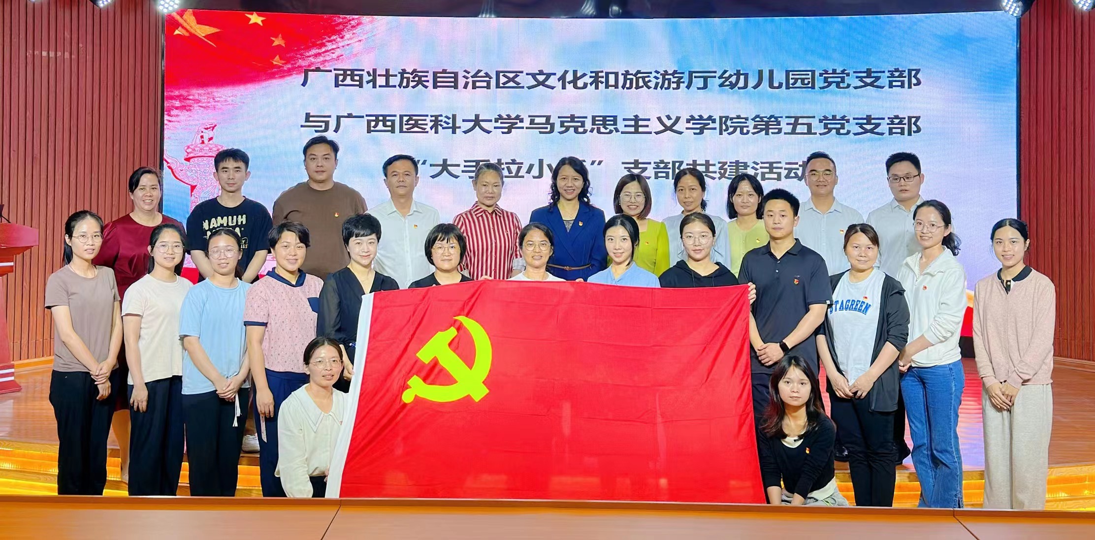 为进一步发挥样板支部的模范带头作用,深入践行雷锋精神,3月28日下午,williamhill英国官网第五党支部联合广西壮族自治区文化和旅游厅幼儿园党支部、williamhill英国官网第一党支部,在自治区文化和旅游厅幼儿园开展“大手拉小手”支部共建暨学雷锋主题活动。