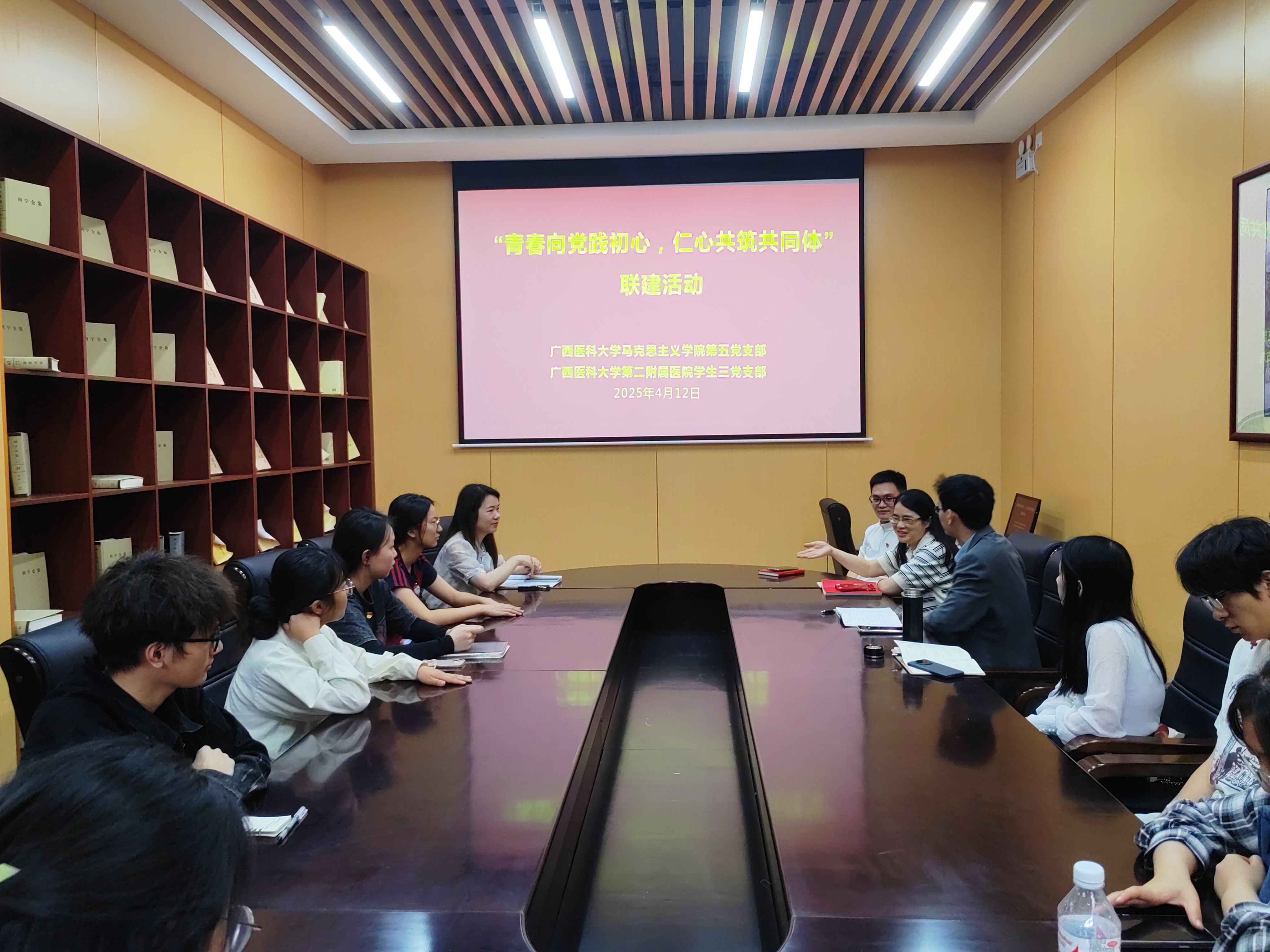 为铸牢中华民族共同体意识,深化医学教育中的民族团结实践,英国威廉希尔公司第五党支部与第二附属医院员工第三党支部于4月12日联合开展“青春向党践初心,仁心共筑共同体”主题联建活动,以党建为纽带推动民族团结与医学育人的深度融合。第五党支部庞铭辉、蒙健堃、叶卿和谢莹,以及第二附属医院员工第三党支部黄美思书记及30名员工党员参与活动。
