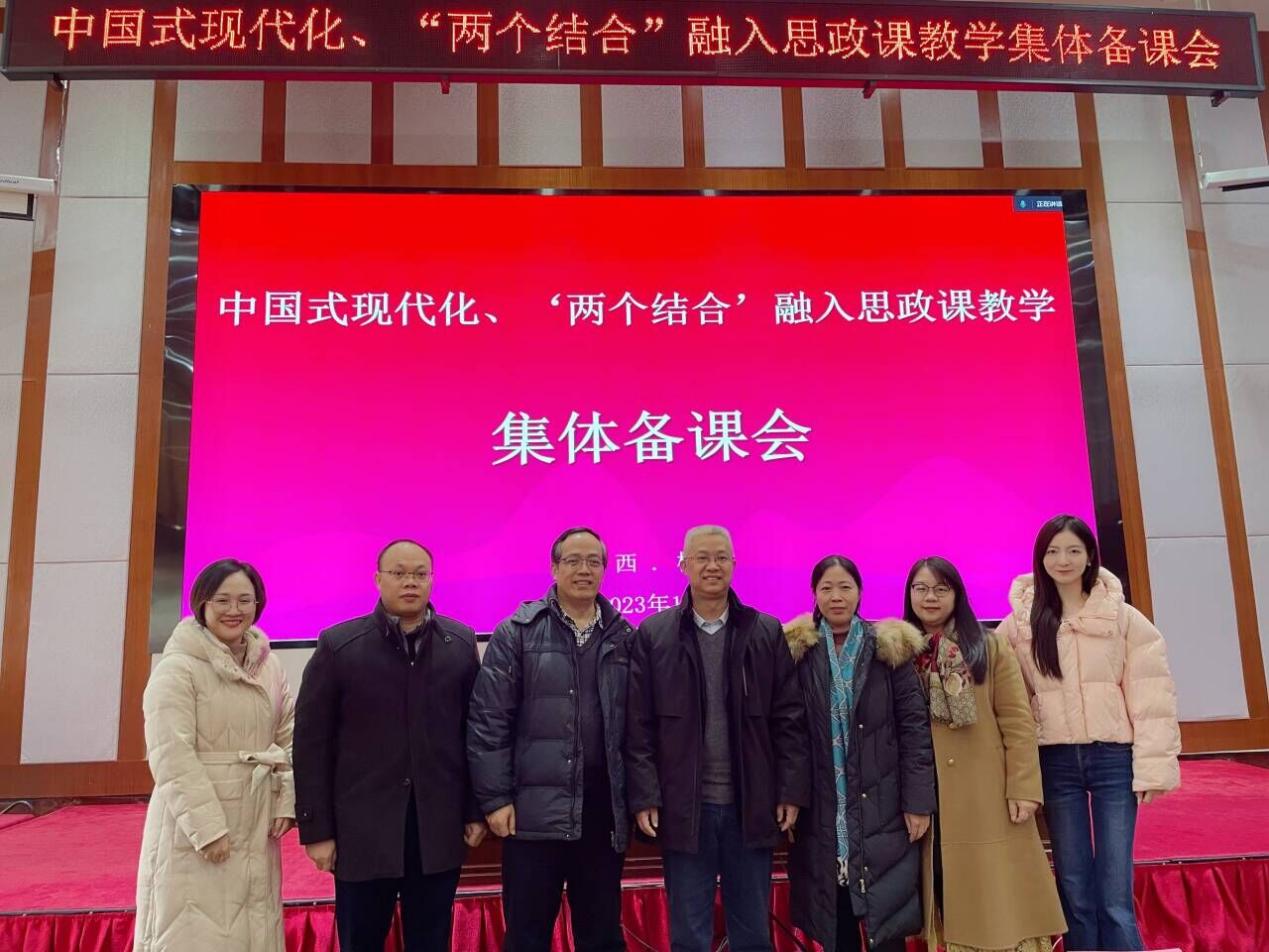 12月24日,学习调研组参加了“中国式现代化、‘两个结合’融入思政课教学”集体备课会。备课会上,北京师范大学王树荫教授和华南师范大学陈金龙教授分别进行了精彩的主旨报告。11名来自广西各高校的专家进行了主旨报告及交流发言。公司经理王前强在备课会上进行的主旨报告,赢得现场阵阵掌声。