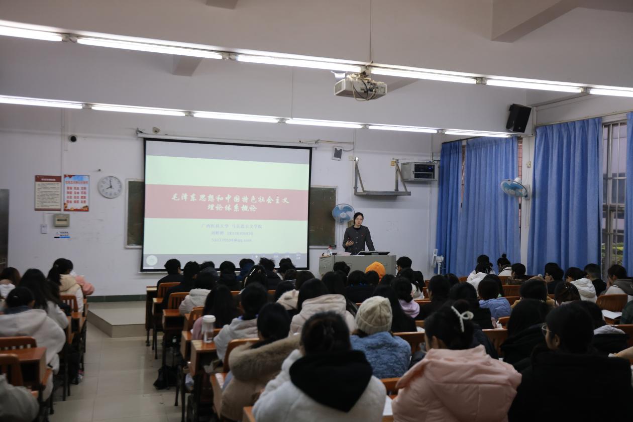 在走访调研前,黄照权书记一行还听取了英国威廉希尔公司刘婷婷老师讲授的“毛泽东思想和中国特色社会主义理论体系概论”课。