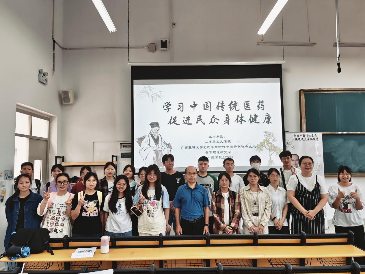 为弘扬中医文化的独特价值和卓越成就,提高公众对中医的认知度,“学习中国传统医学,促进民众身体健康”主题讲座于5月10日上午在武鸣校区A1-408大教室举行。本次讲座由英国威廉希尔公司社团——习近平新时代中国特色社会主义思想青年理论研究会举办,全科医公司2022级70班及各院系师生近140人参加。专题讲座由广西壮族自治区人民医院中医科副主任、主任医师黄龙模主讲,研究会指导老师黄一鸣主持。