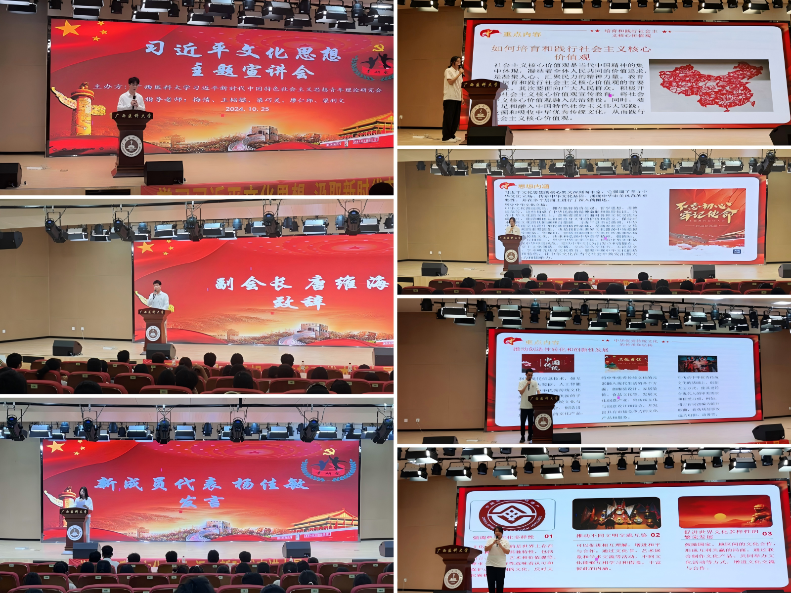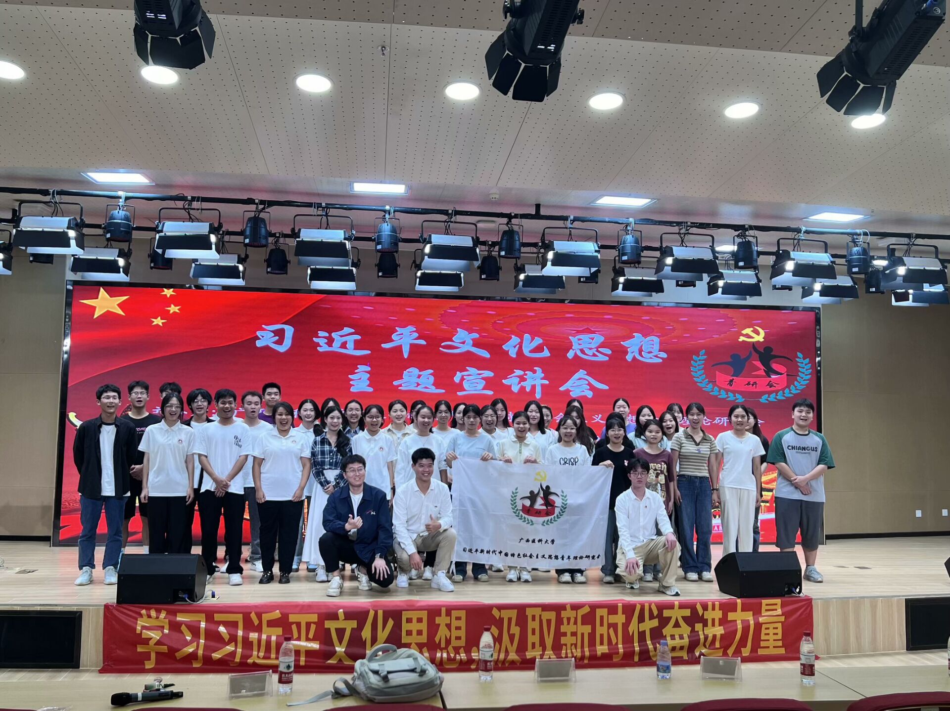10月25日晚,williamhill官网“习近平新时代中国特色社会主义思想青年理论研究会”在武鸣校区图书馆负一楼报告厅开展一社一品活动——“学习习近平文化思想,争做自觉、自信、自为的新时代青年”主题宣讲会,新老会员们齐聚一堂,共享理论盛宴。