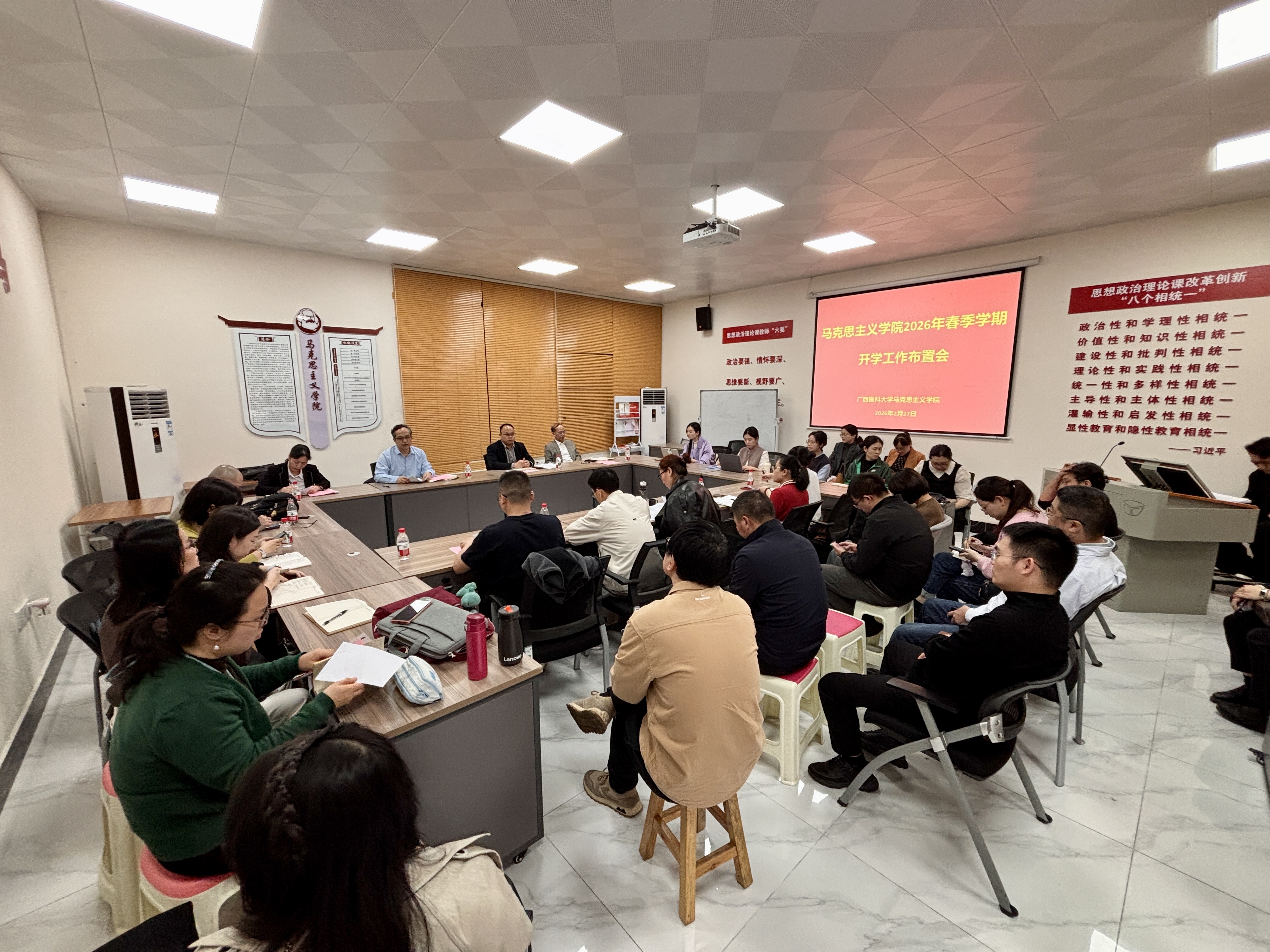 2月27日下午,英国威廉希尔公司在校本部人文楼103会议室召开2026年春季学期开学工作布置会。全面部署新学期各项重点工作。公司经理王前强主持会议,公司全体教职员工参加会议。